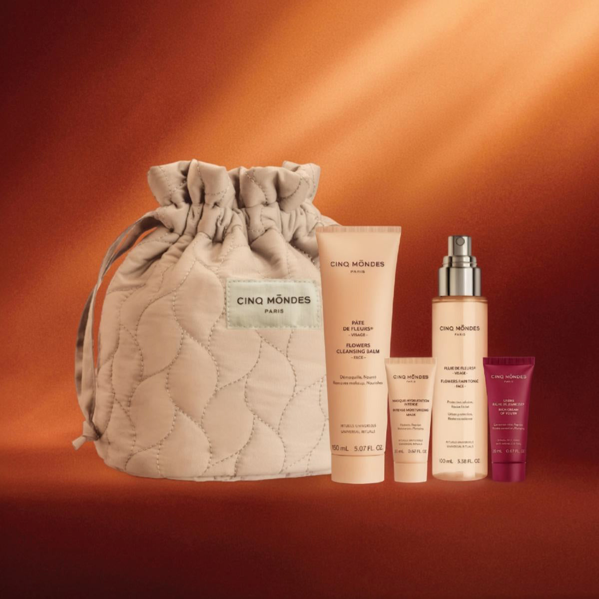 Offrez (ou offrez-vous) une routine visage d'exception, enrichie en plantes des pharmacopées asiatiques. Ce coffret pochon réunit les soins emblématiques Cinq Mondes pour une peau éclatante, repulpée et intensément hydratée.