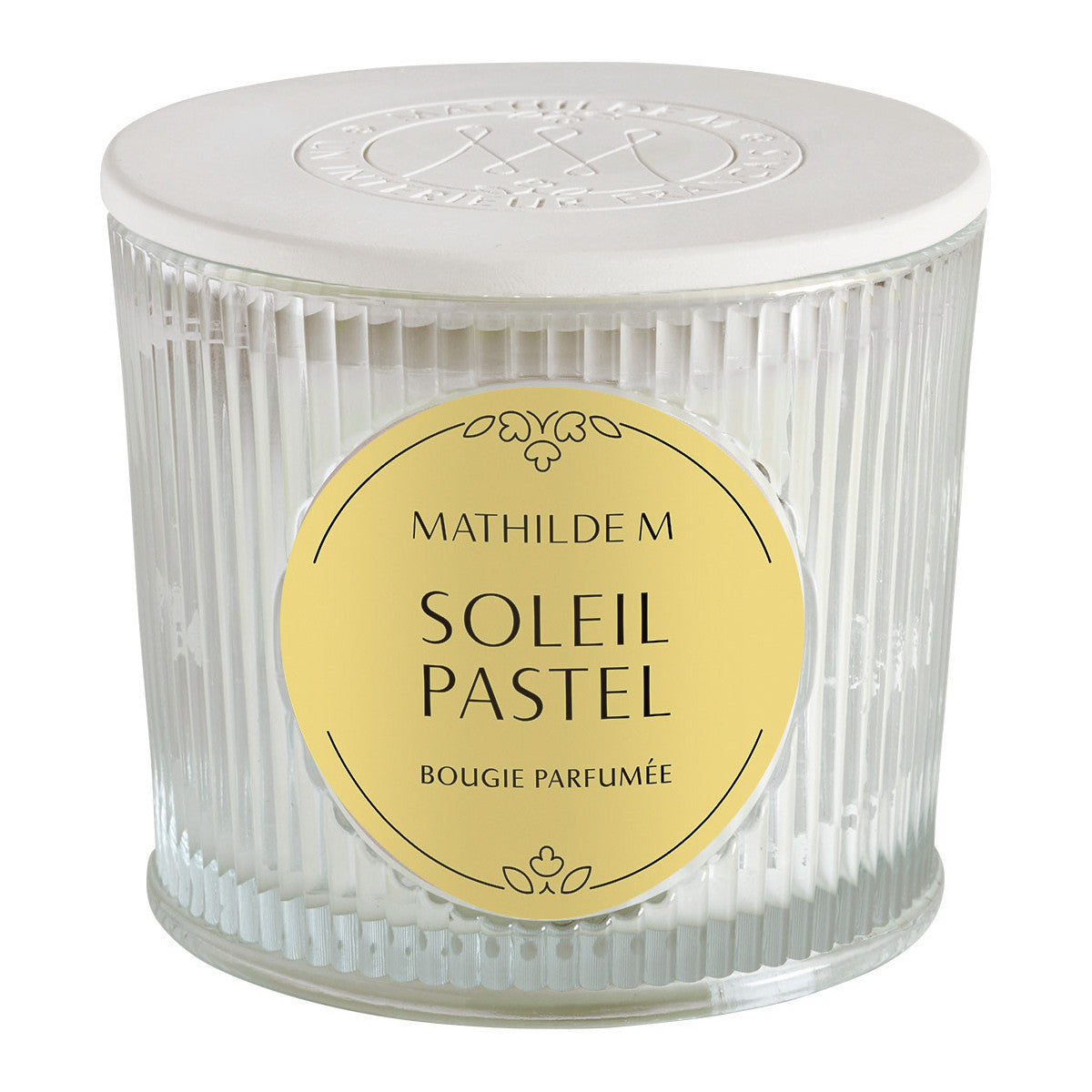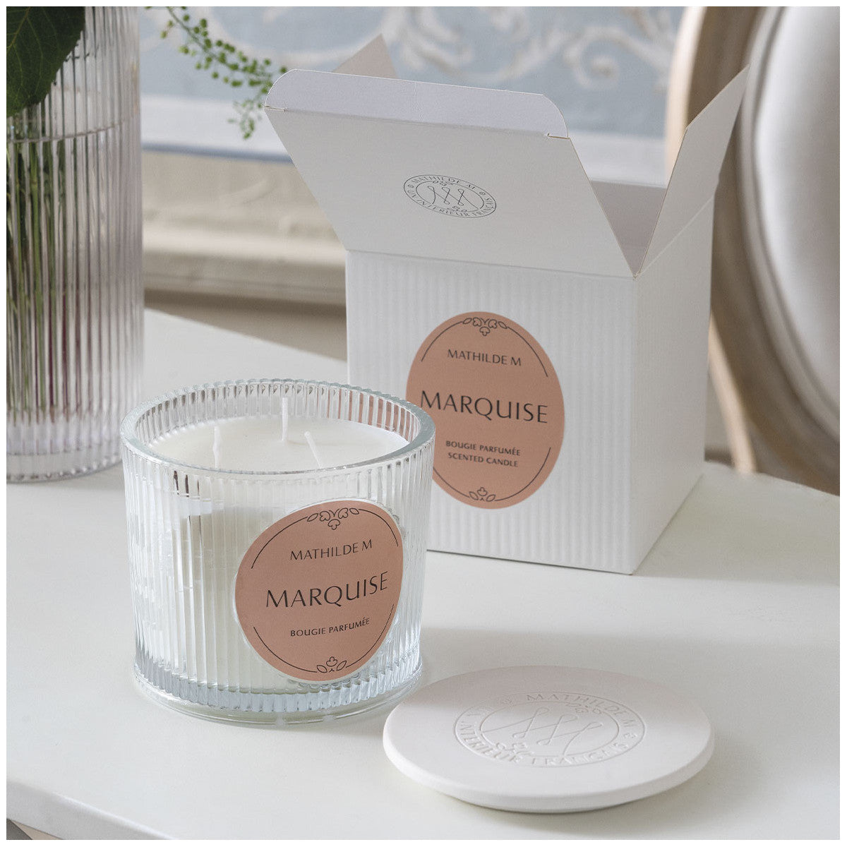 Véritable objet de décoration, cette bougie Les Intemporelles MATHILDE M au format généreux 400 g parfume agréablement à chaud comme à froid. Son écrin en verre côtelé est coiffé d'un élégant couvercle en plâtre réalisé à la main et marqué du sceau Mathilde M. Elle possède 3 mèches 100% coton et est composée d'une cire de haute qualité, mélange équilibré de cire végétale de soja et de cire minérale pour garantir un parfum optimal. Une fois allumée, elle crée instantanément une ambiance chaleureuse dans votre intérieur.