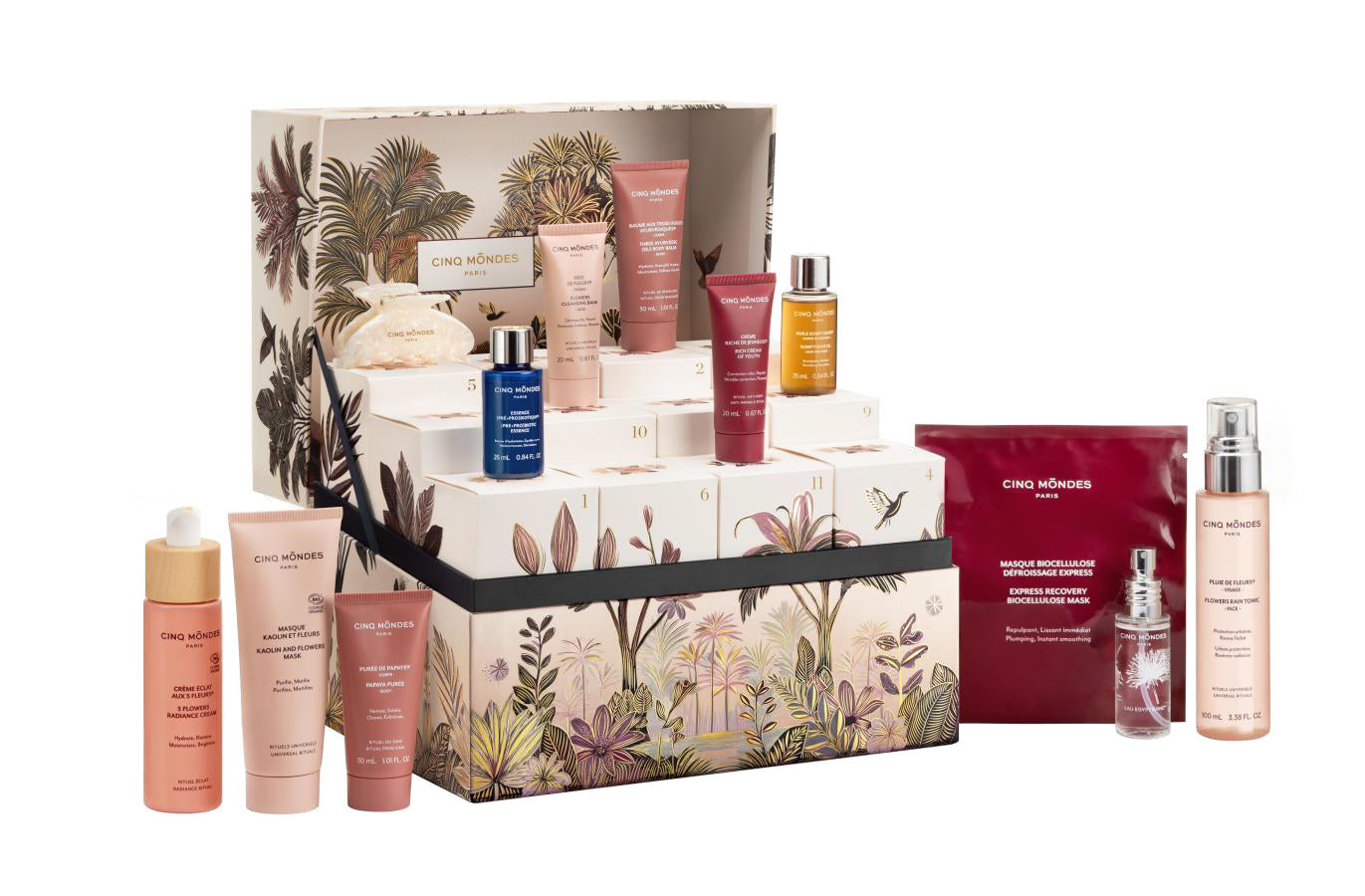 Ce coffret réunit les soins emblématiques de la gamme Pharmacopées Cinq Mondes, inspirés des rituels de beauté ancestraux du monde entier. Chaque produit a été formulé pour offrir une expérience sensorielle unique tout en prenant soin de votre peau.